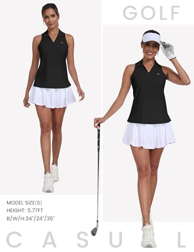 HOT ! MoFiz Women's Golf Shirts Sleeveless Tennis Tank Tops Racerback Polo V Neck Collared Quick Dry Athletic Tanks