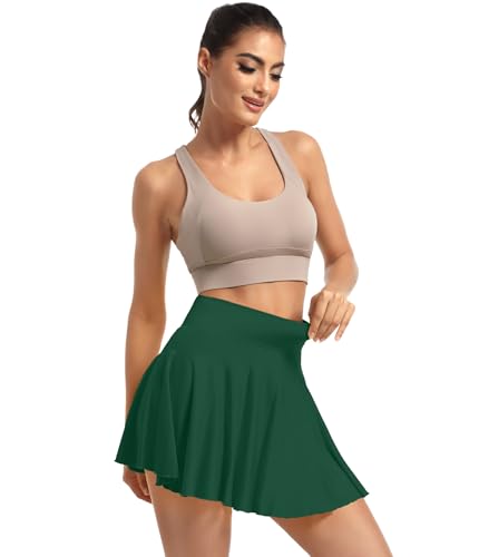 HOT ! YOAKAKU Pleated Tennis Skater Skirts for Women with Pocket Shorts Flowy Golf Athletic Skort Sports Mini Skirt