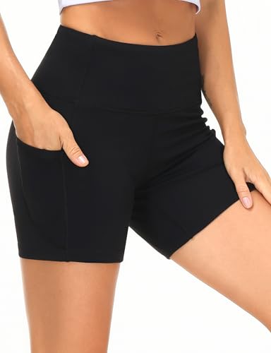 THE GYM PEOPLE 2 Pack Women's High Waist Workout Shorts with Deep Pockets Tummy Control Running Yoga Shorts 6