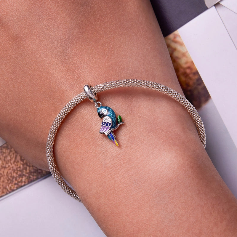 Aifule Sterling Silver S925 Parrot Pendant Bracelet Colorful Oil Necklace Zircon Vivid Bird Pendant Ornament Accessories 1