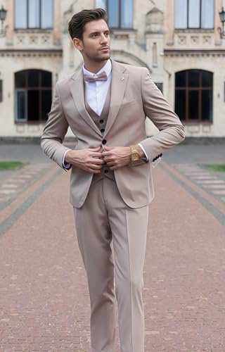 • 【3 PIECE SUIT】Package includes :Jacket + Vest + Pants, 3-Piece Suit. Notched lapel 1 buttons blazer, single breasted 5 buttons vest, and classics pants.