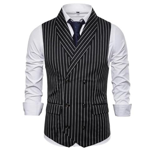 HOT ! Men's Double Breasted Formal Waistcoat – Striped Plaid Sleeveless Suit Vest For Business & Casual Wear