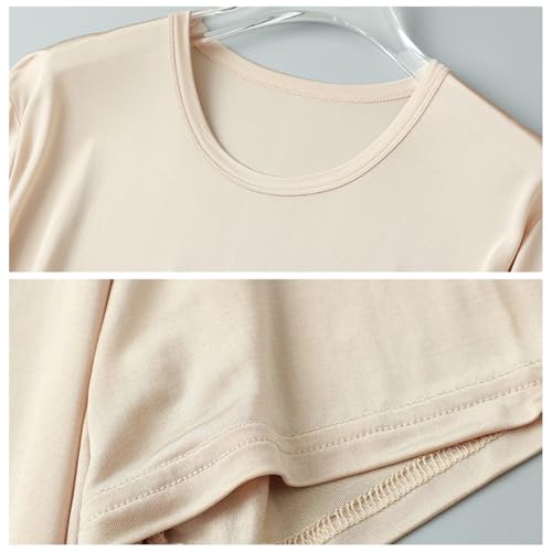 • 【SKIN CARE】Natural silk is a type of protein,this silk tee shirts is very friendly to your skin,silk is the most hypoallergenic of all fabrics, the perfect choice for sensitive or allergy-prone skin.mulberry silk can keep moisture in our skin,it also has a good effect of ultraviolet protection.take care for your body.