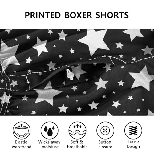 Men's Cotton Boxers Briefs Star Black White Breathable Boxer Shorts Underwear with Button Fly 3