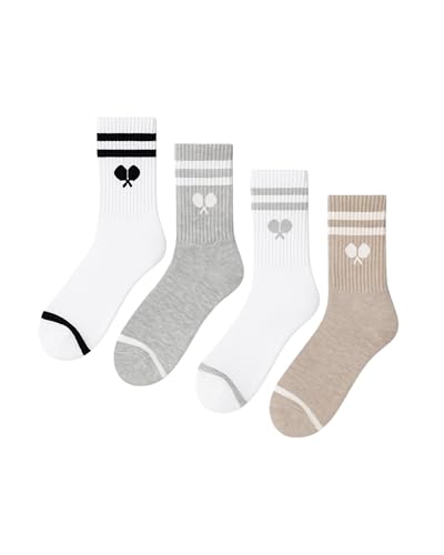 L’ORANGE Court Crew Pickleball Socks – 4-Pack | Premium Cotton Athletic Crew Socks for Men & Women | Neutral Tones, Varsity Stripe | Cushioned, Breathable, Stylish Gift Set 4