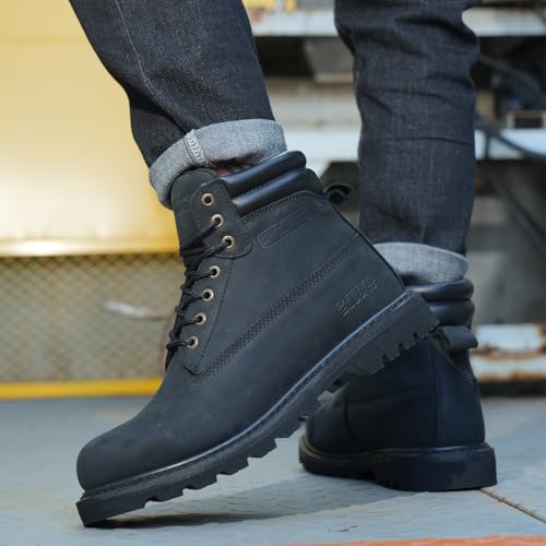 Steel Toe Work Boots for Men, 6-Inch Non Slip Comfortable Leather Waterproof Industrial Construction Safety Workboots 6