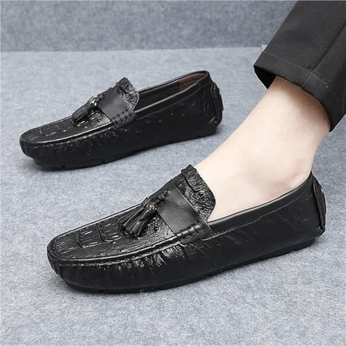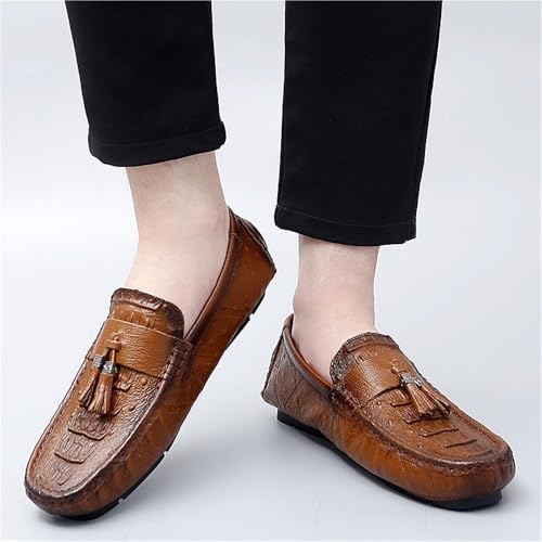 Mens Crocodile Print Tassel Loafers Slip On Round Toe Driving Shoes Flexible Lightweight Walking Casual Comfortable 6