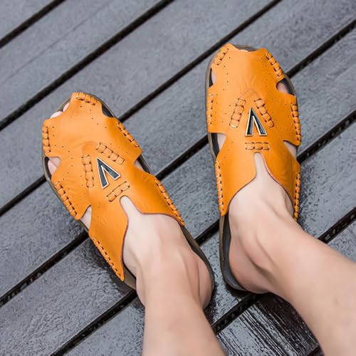 • HIGH QUALITY SUMMER SANDALS:100% genuine leather upper mens casualsandals,lightweight and breathable,Soft and double handmade sewing ensures the durability, won't broke easily. closed-toe design for maximum protection that won¡¯t pinch on your outer toes.
