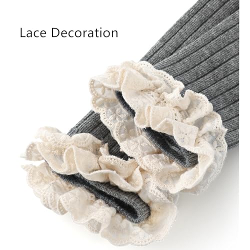 Yizelli Ankle Length Leggings for 0-8 Years Girls Footless Knitted Tights Warm Stockings Pant with Lace Trim 7