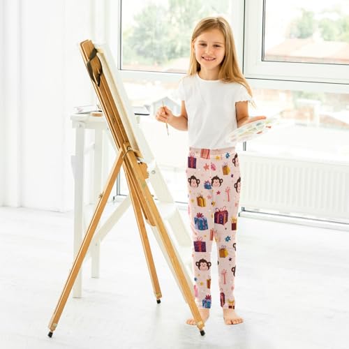 Vdsrup Girls Leggings Cute Pink Monkeys Kids Ankle Length Leggings Pants Athletic Yoga Pants Toddler Tights Trousers 4T 7