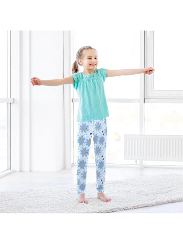 Girls Leggings White Blue Daisy Flower Toddler Girls Clothes Toddler Comfortable Bottoms Girl Leggings 3-4T 6