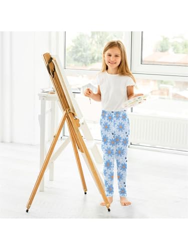 Girls Leggings White Blue Daisy Flower Toddler Girls Clothes Toddler Comfortable Bottoms Girl Leggings 3-4T 4