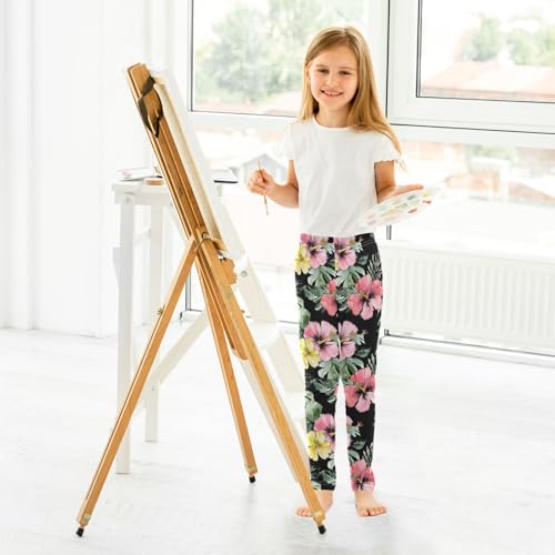 Hibiscus and Tropical Leaf Girls Casual Leggings for Kids Printed Long Pant Bottoms Stretch and Soft 6