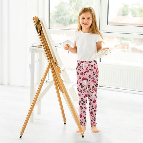 Leopard Mushroom Pink Girls Leggings Ultra Soft Compression Yoga Gym Pants for Kids 4-10T 4