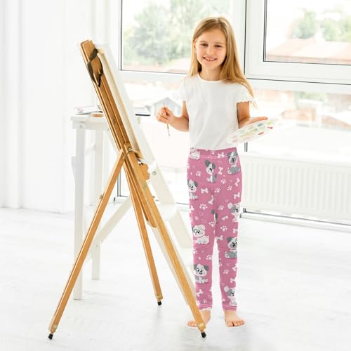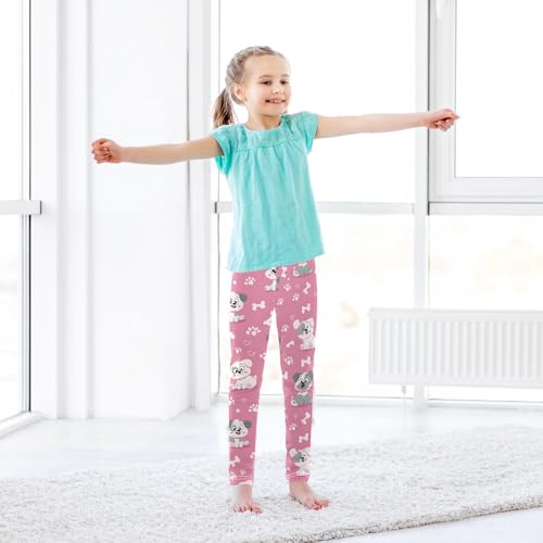 Cute Dog Heart Paw Pink Girls Leggings Ultra Soft Compression Yoga Gym Pants for Kids 4-10T 3