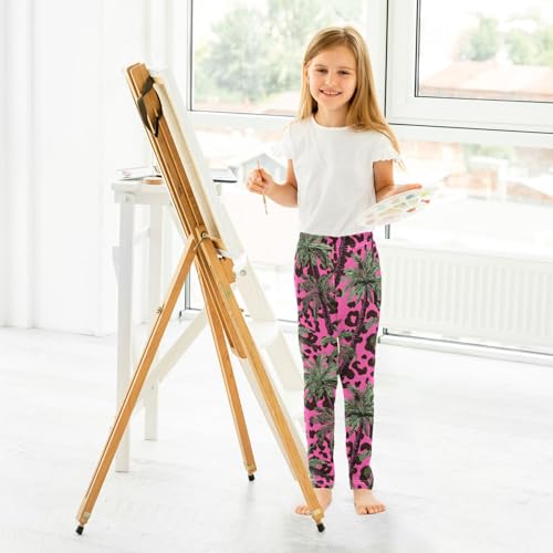 Pink Leopard Coconut Tree Girls Leggings Soft Stretch Workout Yoga Dance Pants for Kids Casual Tights 6