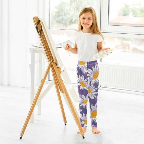 Purple Daisies Oil Painting Girls Leggings Soft Stretch Workout Yoga Dance Pants for Kids Casual Tights 6