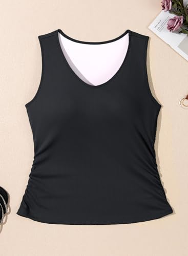 Dokotoo Tank Top with Built in Bra for Women Casual Summer Sleeveless Tops Slim Fitted V Neck Ruched Cami Shirts 5