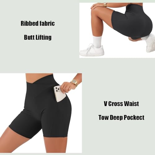 • 【Ribbed design】Crossover High Waisted Ribbed Biker Shorts: Sexy slimming criss cross v waist, Tummy control squat proof cycling shorts, Supportive ribbed overlapping waistband, seamless waistband feels weightless as air, to shape a flat abdomen without feeling too tight