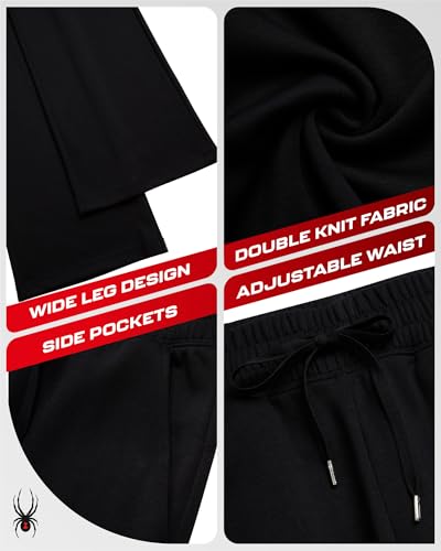 HOT ! Spyder Womens Pants - Double Knit Wide Leg Pants Woman with Pockets Drawstring Waistband Joggers Sweatpants Women