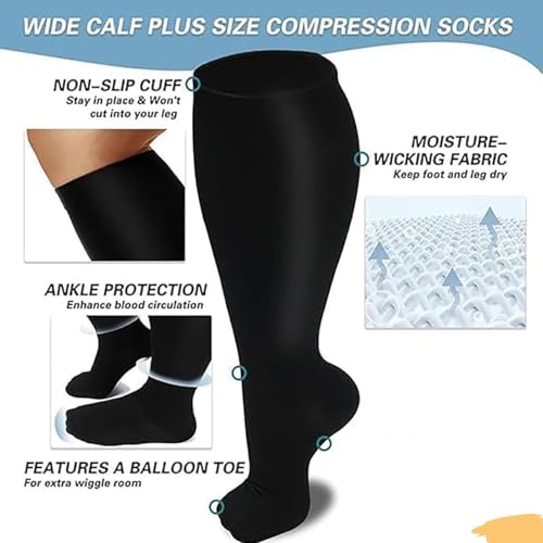 • PLUS SIZE COMPRESSION SOCKS WIDE CALF: Our socks are specially designed for wide calves, providing a gentle and comforting compression that doesn't restrict movement or cut off circulation.