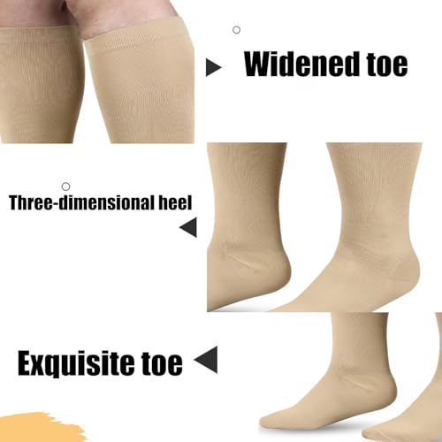 • COMFORT AND NON-SLIP: The wide top band of these wide compression socks women men ensures a comfortable fit and prevents rolling during wear. Premium reinforced fine knit, seamless design is thin and soft against the skin.