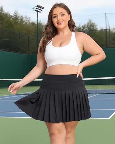 Women's Plus Size Pleated Skirt Athletic 2 in 1 Skort Tennis Skirts High Waist Summer Workout Golf Stretch Skirt 6