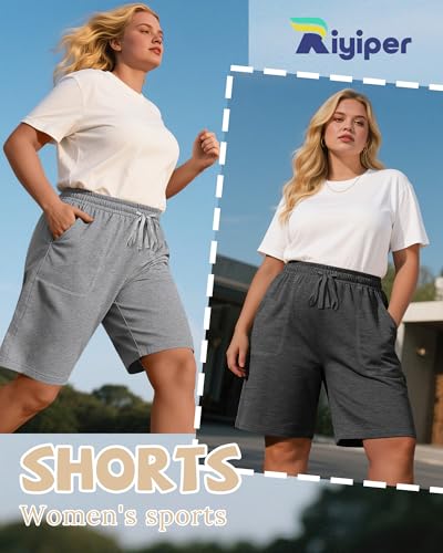 HOT ! Riyiper 3 Pack Women's Plus Size Bermuda Shorts, Drawstring Elastic High Waist Loose Fit Casual Athletic Bottoms with Pockets