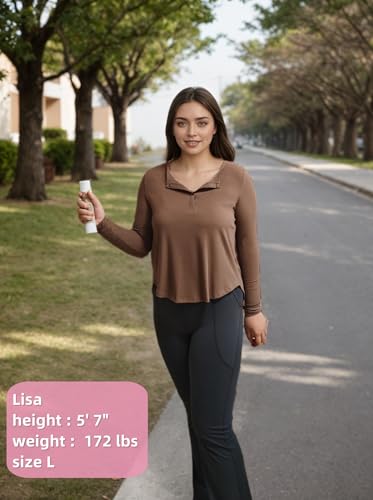 • Long Sleeve Yoga Tops for Women dimension : S=US 4-6,M=US 8-10,L=US 12-14,XL=US 16-18,XXL=US 20 For lady height 5' 6", 157 lb weight , size L is quite perfect.