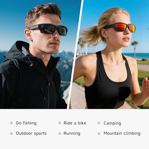 • HD POLARIZED LENSES: Engineered with UV400 lens technology, these polarized sunglasses men can block 99.9% of harmful UV rays, offering comprehensive eye protection. The high-definition polarized lenses eliminate harsh glare and reflections, delivering a clear visual experience for fishing, running, and other outdoor activities