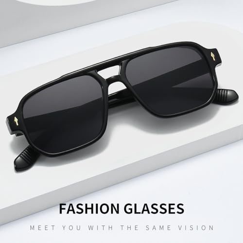 OZPYKAE Men Square Sunglasses,Retro UV400 Protection Double Bridge Trendy Rectangle Women Aviator Sunglasses 1