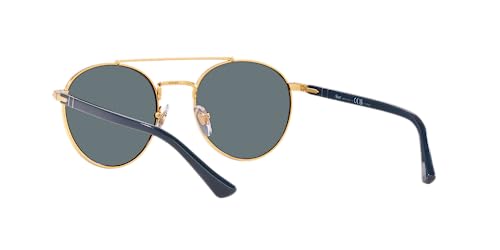 • FRAME FEATURES: PO1011S sunglasses feature a square, gold frame with a distinct double bridge and dark blue polarized lenses.