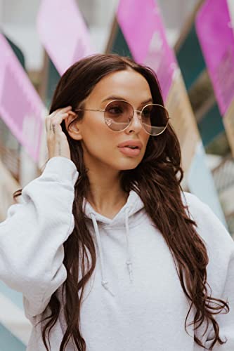 HOT ! Bluestone Sunshades Round Love Sunglasses - Chrome Frame with Gray Lens - UV Blocking - Anti Fog - Scratch Resistant