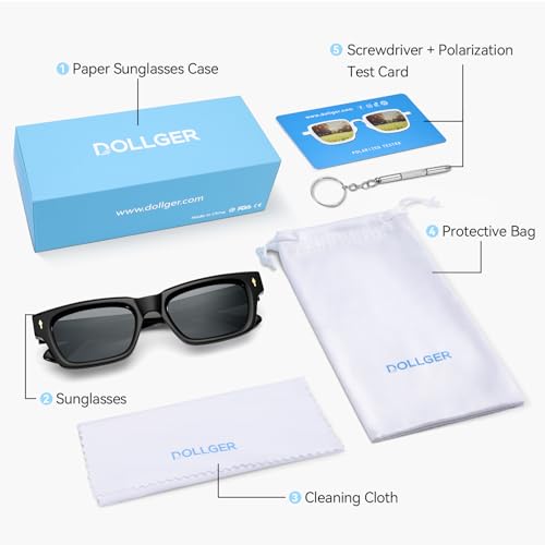 Dollger Thick Square Polarized Sunglasses for Men Women Fashion Classic Designer Sunglasses Black Shades UV Protection 6
