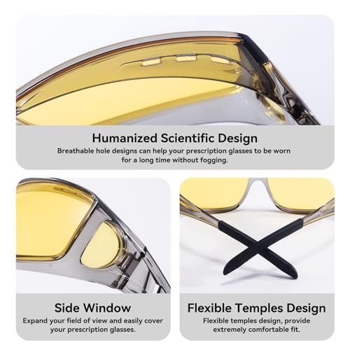 Dollger Night Vision Glasses for Women Men,Fit Over Prescription Glasses with Anti Glare Yellow Lens 3