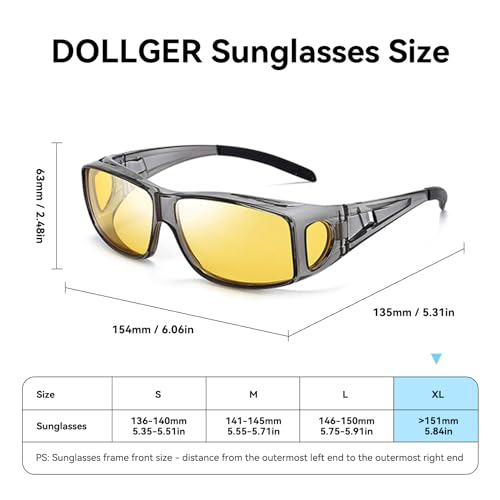 • Perfect Fit for Prescription Glasses: Designed specifically for people who wear prescription glasses, our night driving glasses can be easily worn over your existing square glasses. They provide a comfortable and secure fit with a maximum frame size of 139mm/5.47 inches (width) x 38mm/1.49 inches (height).