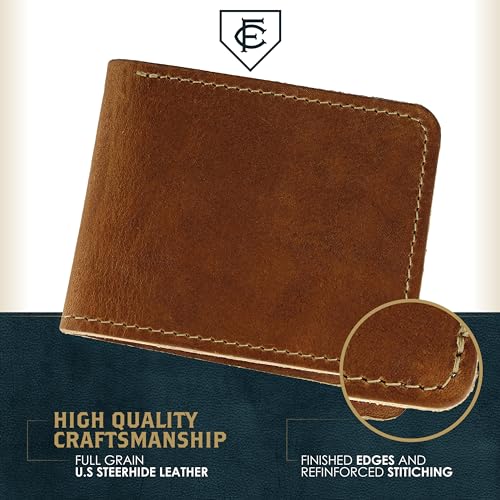 • [Quality Craftsmanship]: FC Goods curates only handcrafted items to ensure genuine quality; Full-grain US steerhide leather provides a soft, durable bifold wallet for a comfortable, secure grip; Durable stitching and 0.5-ounce leather conditioner help keep your billfold wallet leather in pristine condition