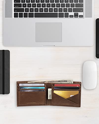• STORAGE CAPACITY: This bifold wallet has compact capacity for all of your essentials. With 6 card slots, 2 slip pockets and 1 bill compartment, there is more than enough room in this wallet for all of your cash, credit cards and more