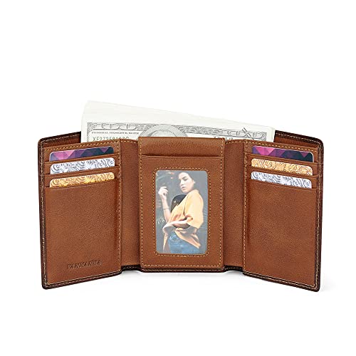 HOT ! VANNANBA Mens Genuine Leather RFID Trifold Wallet With ID Window, Credit Card Pockets (brown)
