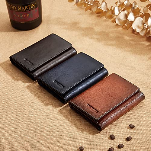 VANNANBA Mens Genuine Leather RFID Trifold Wallet With ID Window, Credit Card Pockets (brown) 1