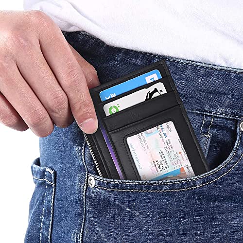 GOIACII Genuine Leather Minimalist Wallet for Men Purse Pouch Slim Front Pocket RFID Blocking ID Window 6 Credit Debit Card Holder Zipper with Gift Box (Black), 206 5