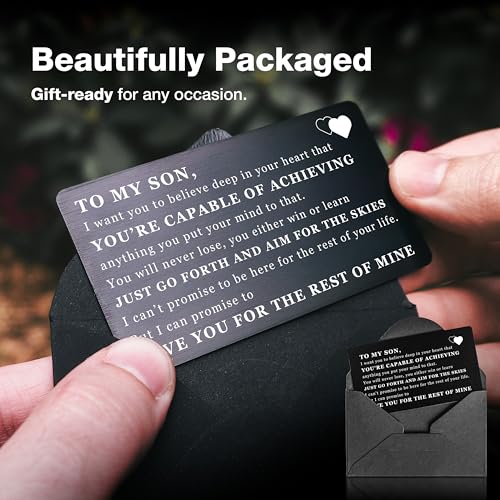 HOT ! Engraved Wallet Card for Son – Meaningful Gift from Mom & Dad, Inspirational Keepsake for Birthday, Graduation, Wedding, or Father’s Day