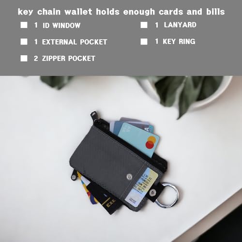 Minimalist Wallets for Men and Women - RFID Blocking Secure Travel Wallet by with Clear ID Window and Key Ring (Black+Gray) 6