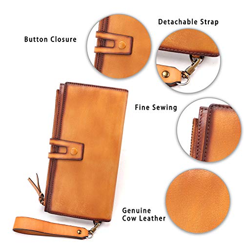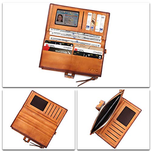 More information about Genuine Leather Slim Wallets Vintage Handmade Bifold Long Wristlet Purse Money Clip Card Holder with Zipper (Brown)