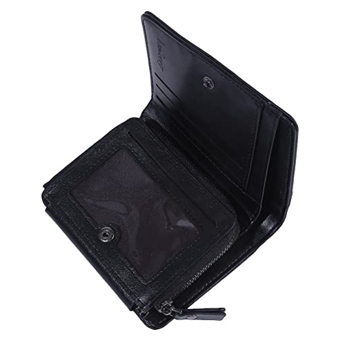 Men's Short Wallet Multi-card Tri-fold Zipper Coin Purse Casual Card Bag,Black 2