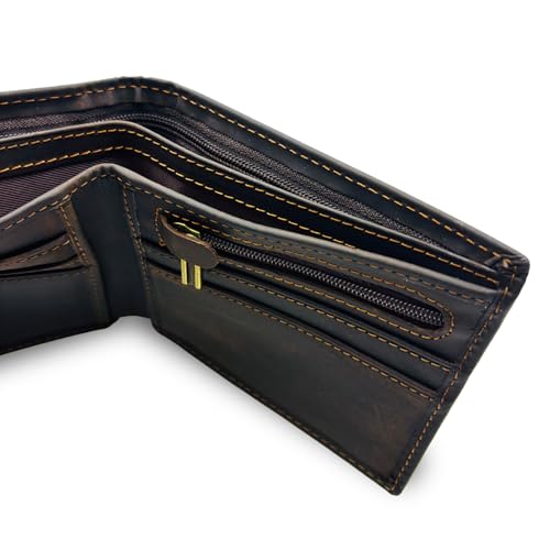 HIDO Wallet for Men with Multiple Card Slots,Slim Genuine Leather Bifold Zipper Money Porket 5