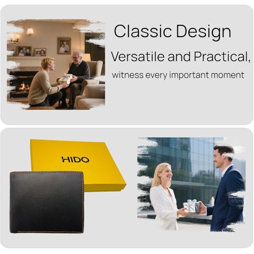 HOT ! HIDO Wallet for Men with Multiple Card Slots,Slim Genuine Leather Bifold Zipper Money Porket