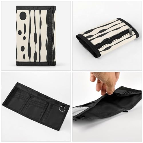 Black White Lines Dots Men's Casual Wallet Trifold Minimalist Wallet ID Card Holder Wallet with Coin Pocket 7