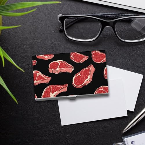 Meat Red Steaks Business Card Holder Slim Credit Case Pocket Name Case Wallet for Men Women 5