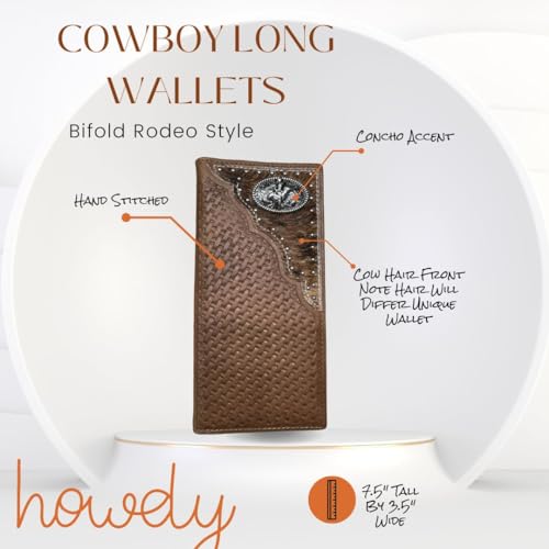 HOT ! Urbalabs Mens Long Wallet Basketweave Leather Soft Leather Cow Hair Checkbook Style Cowboy Hand Crafted High End Mens Wallets Leather Bull Rider Rodeo Concho Gifts For Men (Brown)